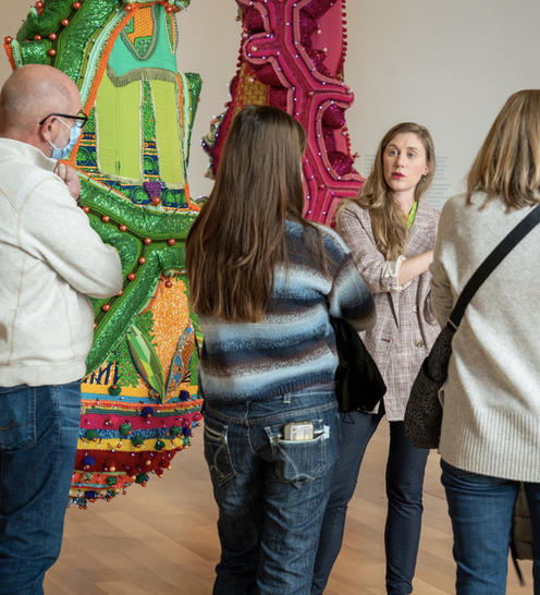 Join a MAAM Student Educator for a unique 15-minute, drop in talk focusing on a handful of objects chosen to showcase the special exhibitions on view, May Stevens: My Mothers and Jace Clayton: They Are Part. This interactive experience centers conversation and delves into the artistic process with discussion facilitated by MassArt emerging artists.